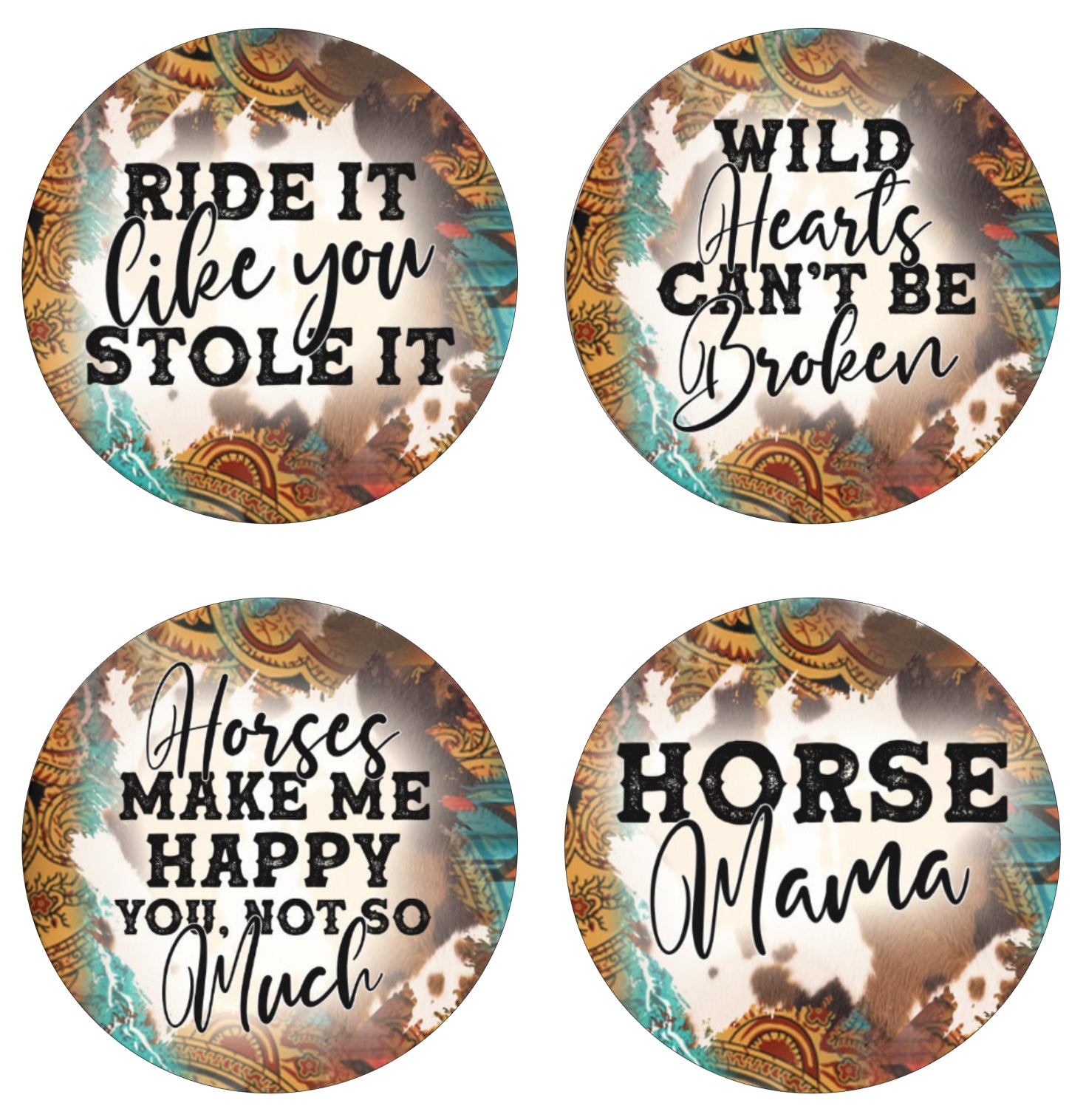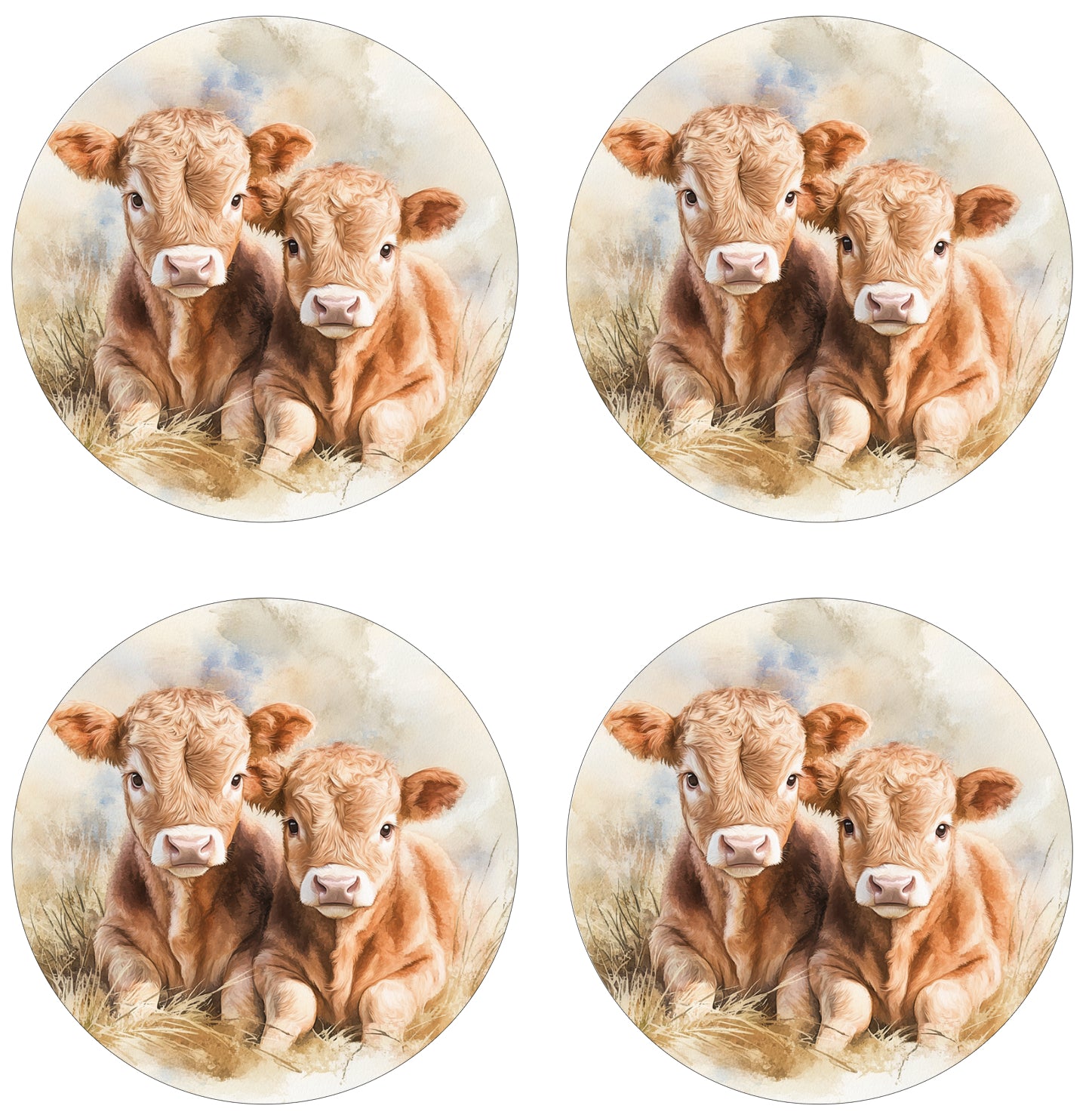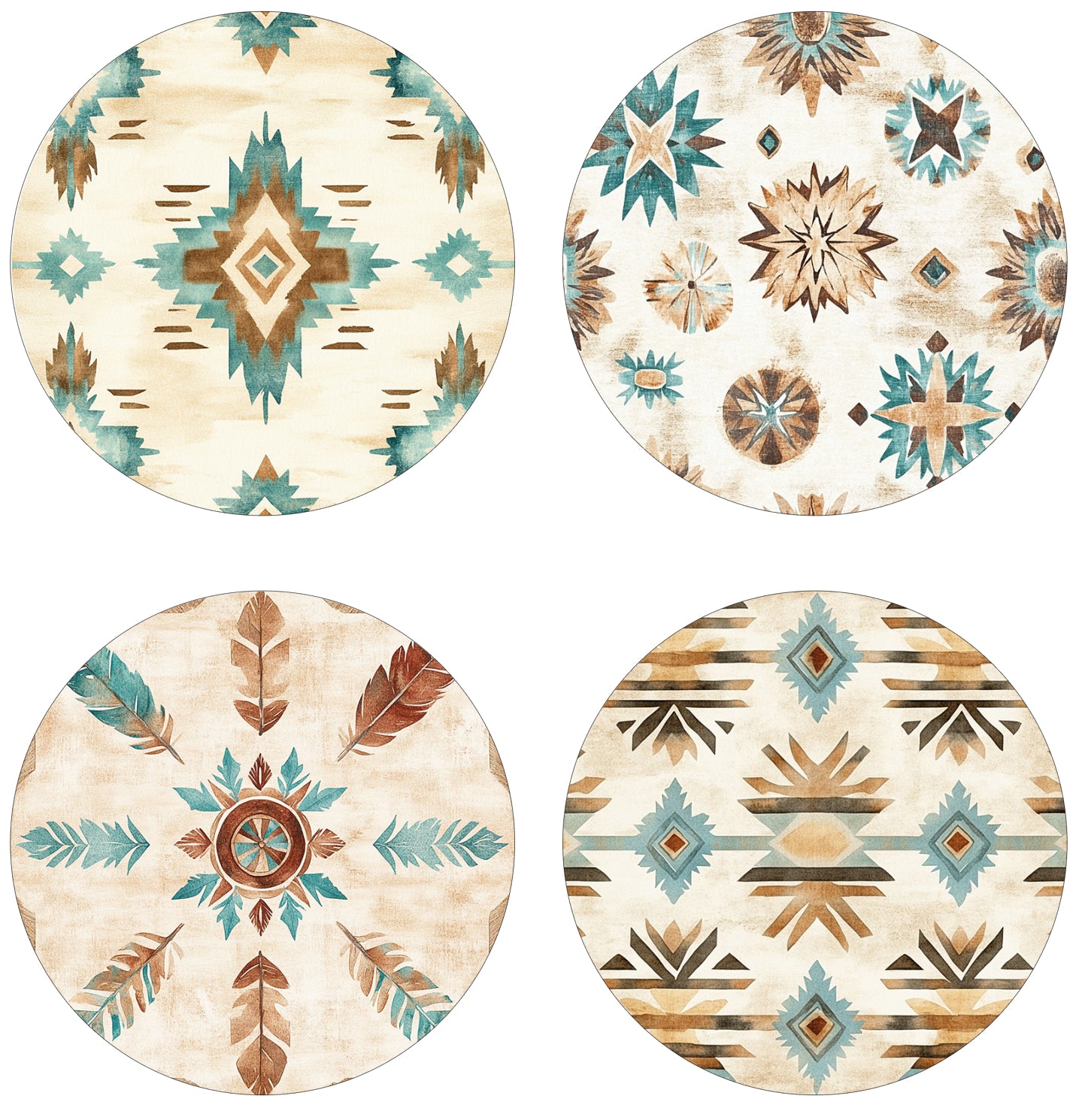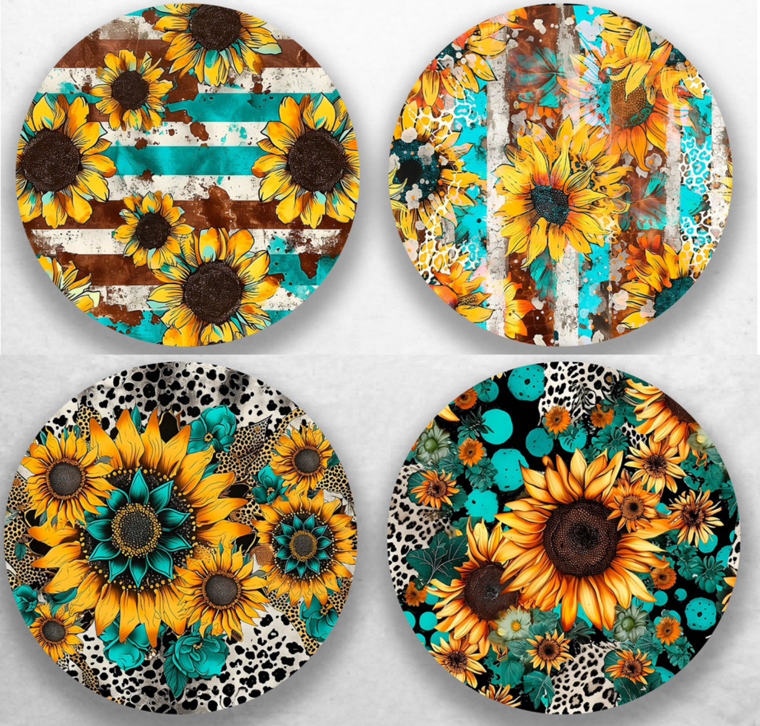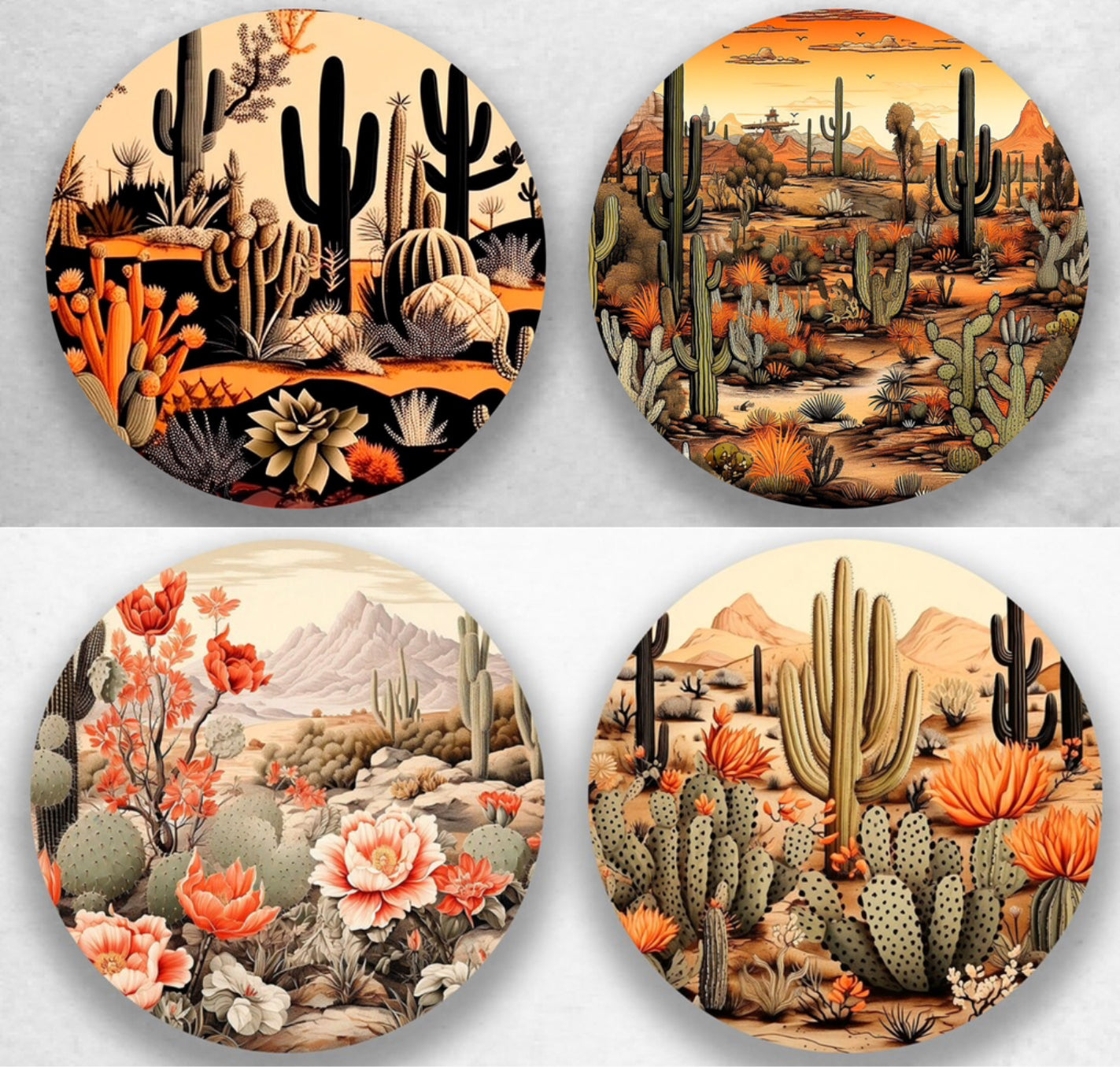 Set of 4 Ceramic Coaster Sets with cork backing.