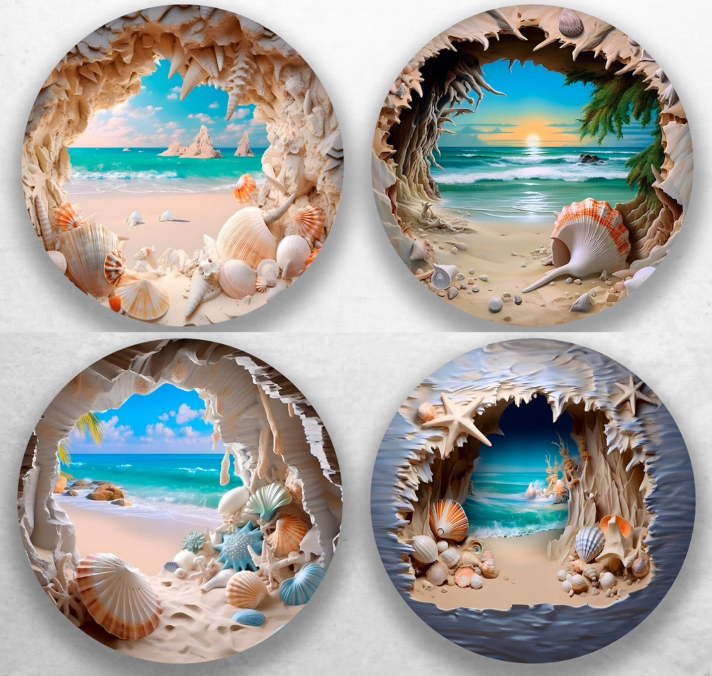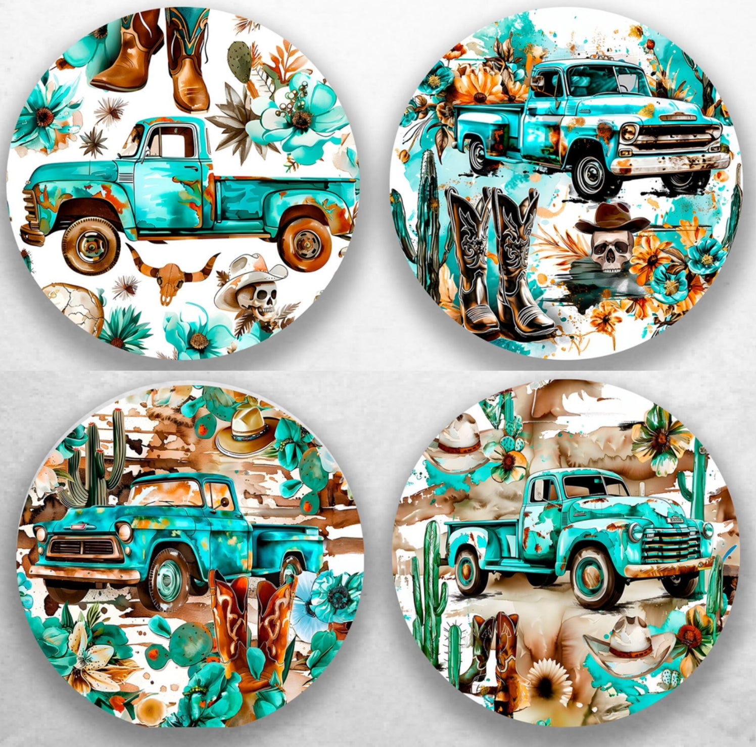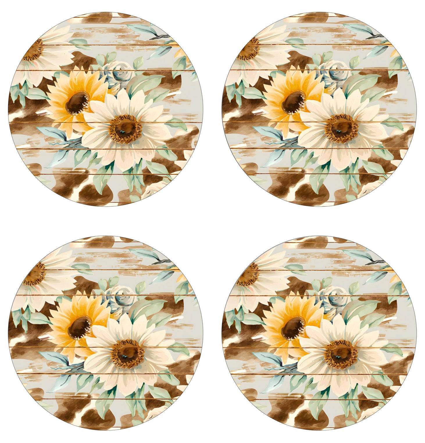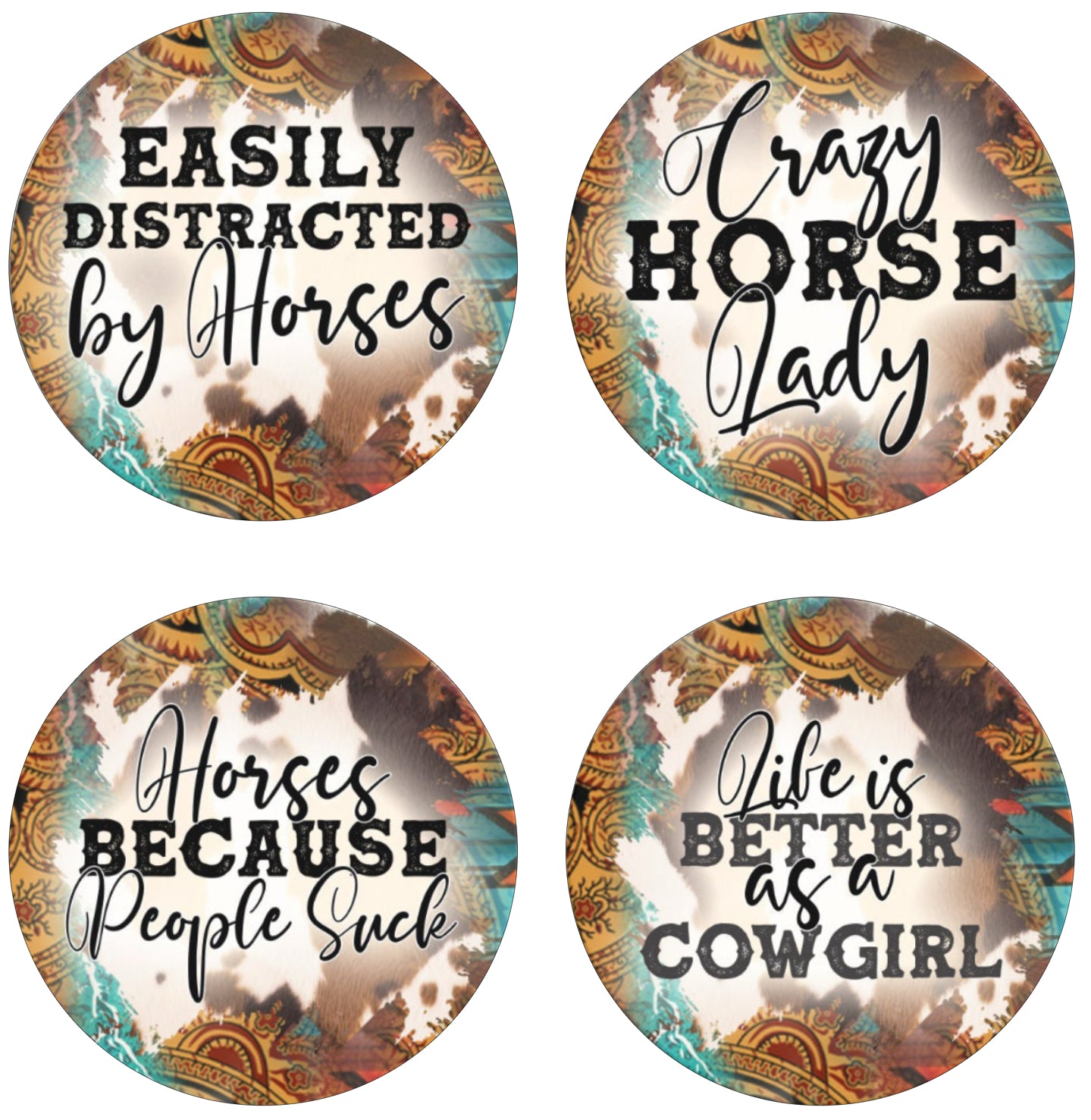 Set of 4 Ceramic Coaster Sets with cork backing.