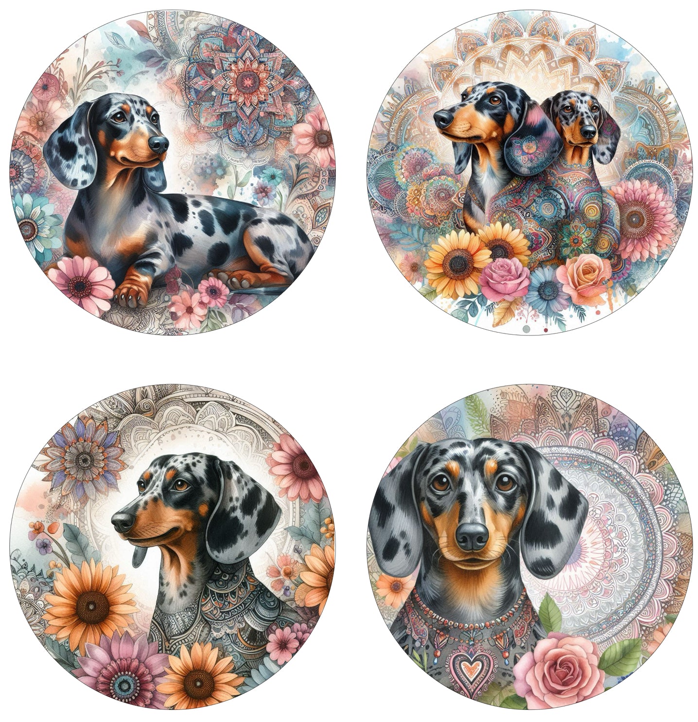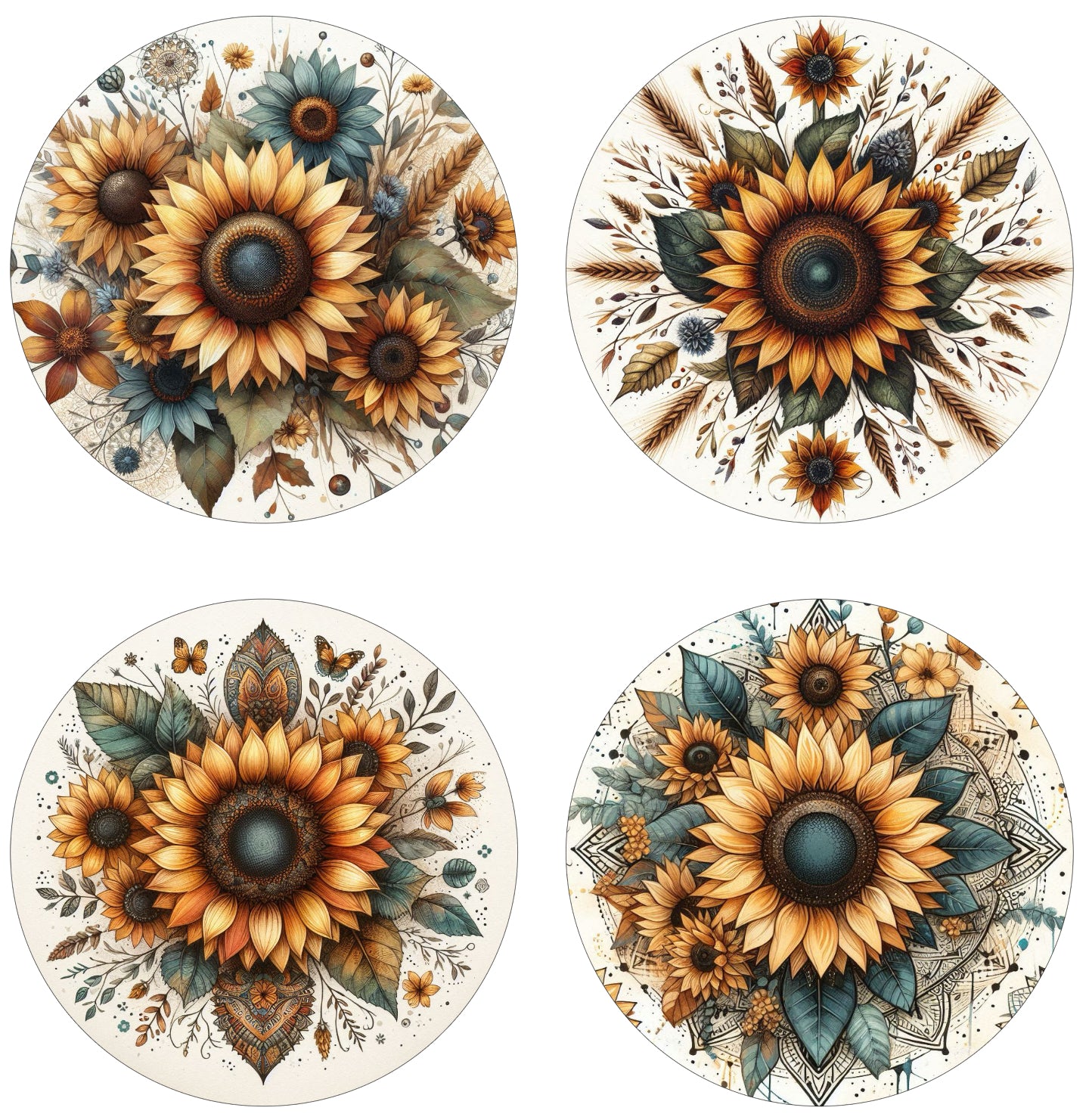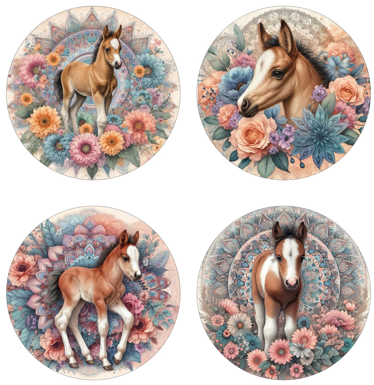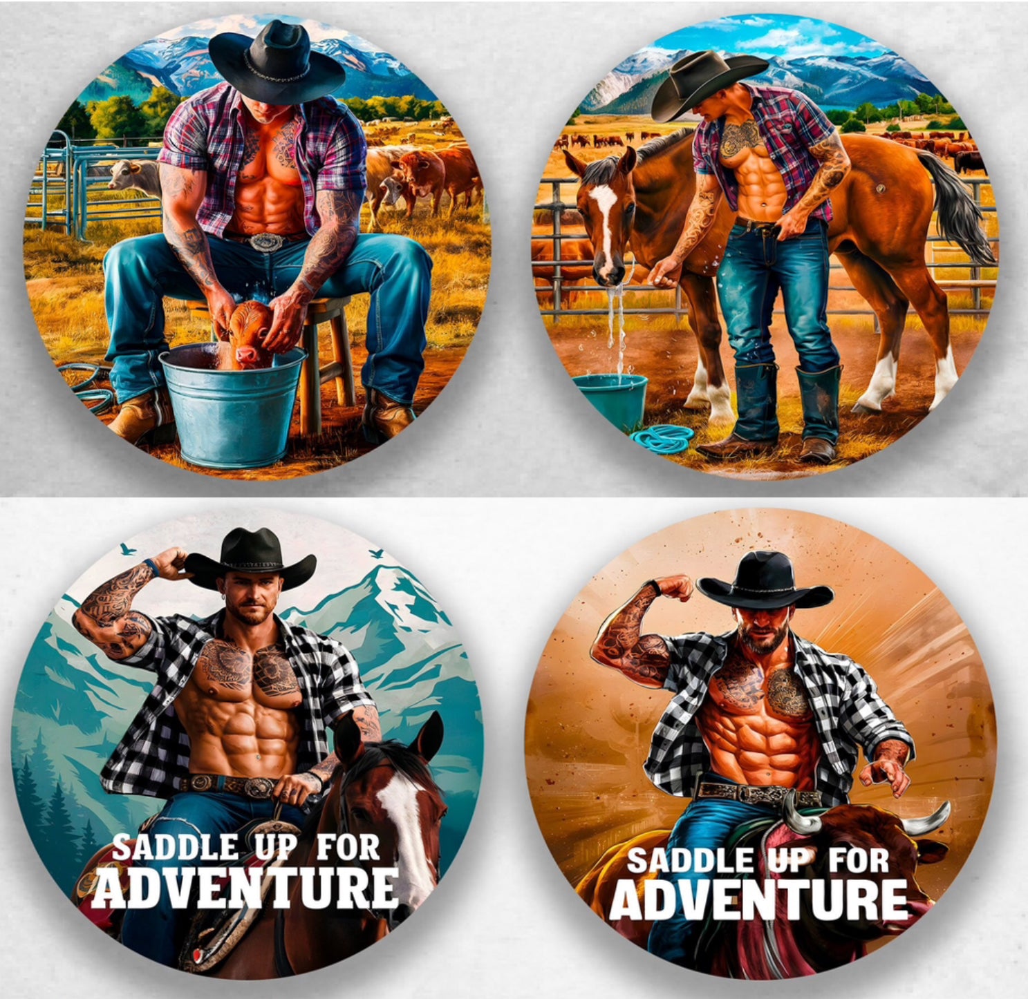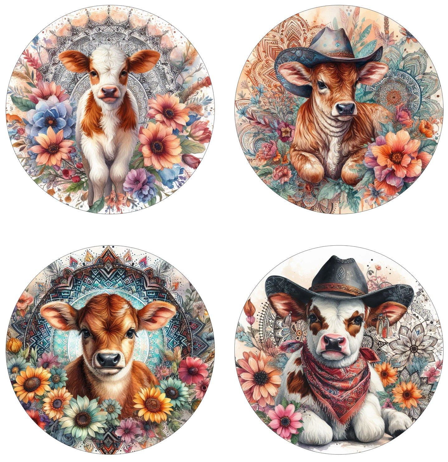 Set of 4 Ceramic Coaster Sets with cork backing.
