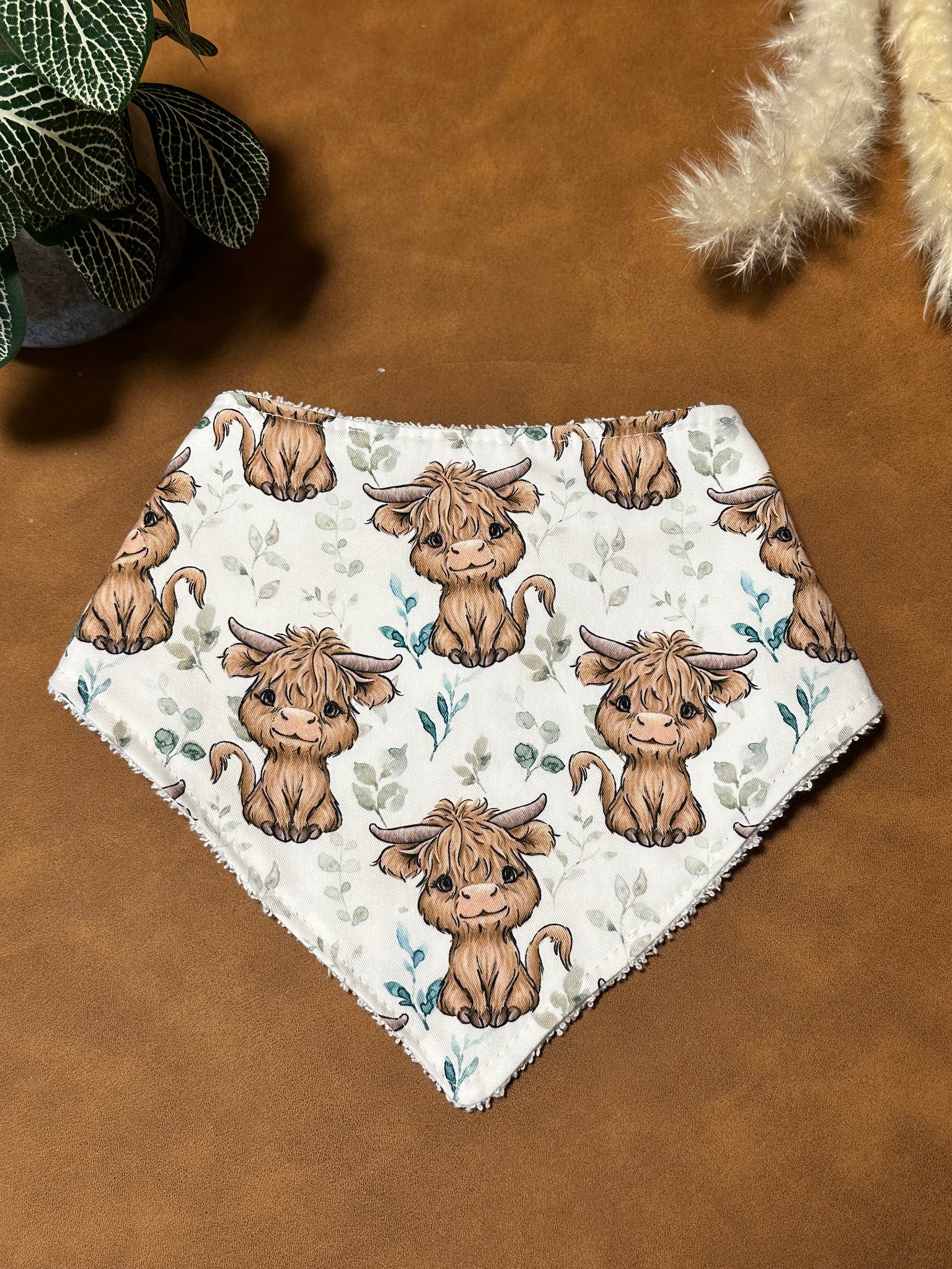 Our bibs are made with a stylish cotton front and a terry towelling backing with great absorbency, 2 snap closure for sizing.