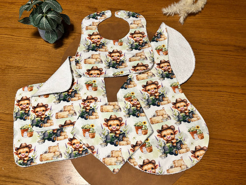 4 Piece - Bib & Wash Cloth Set - Mustard Gingham