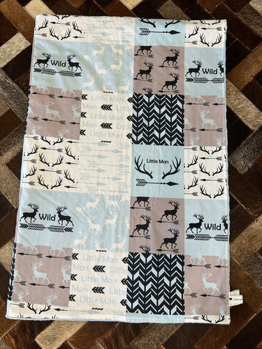 PRE-ORDER Minky Blanket - Little Man - Baby Blue