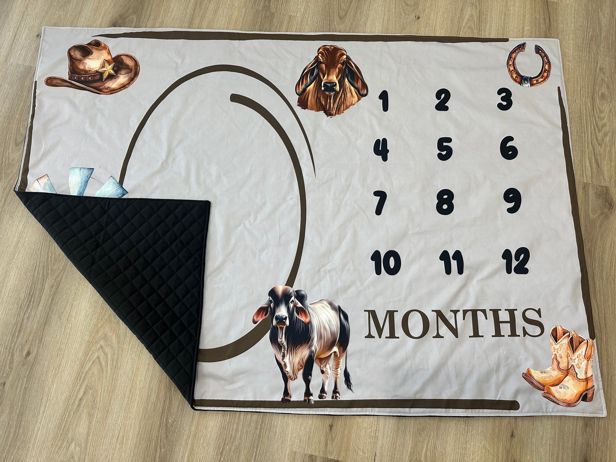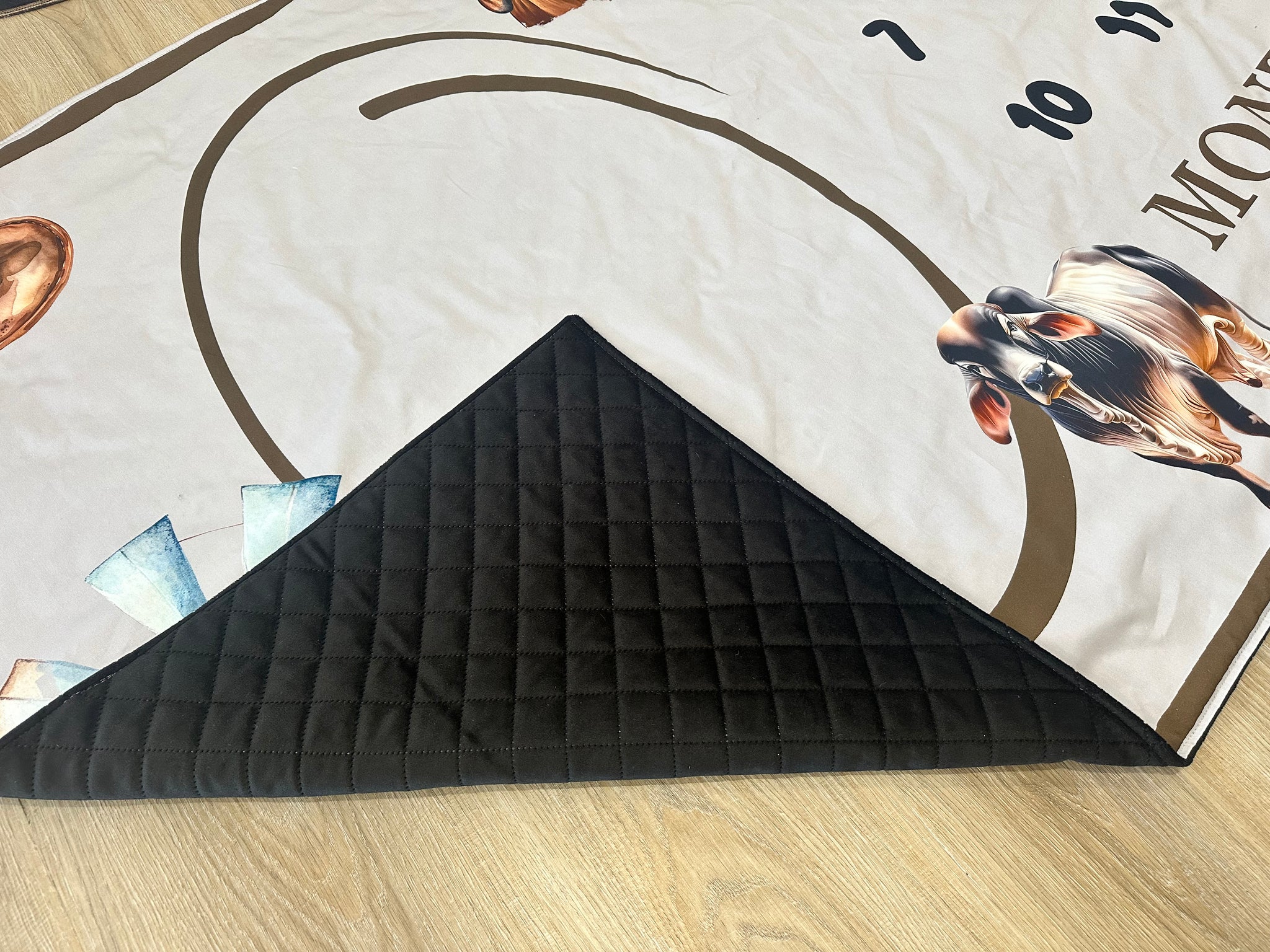 This blanket/floor mat is great for your monthly milestone pictures. It is made with a cotton front and a quilted velvet backing for extra cushion.